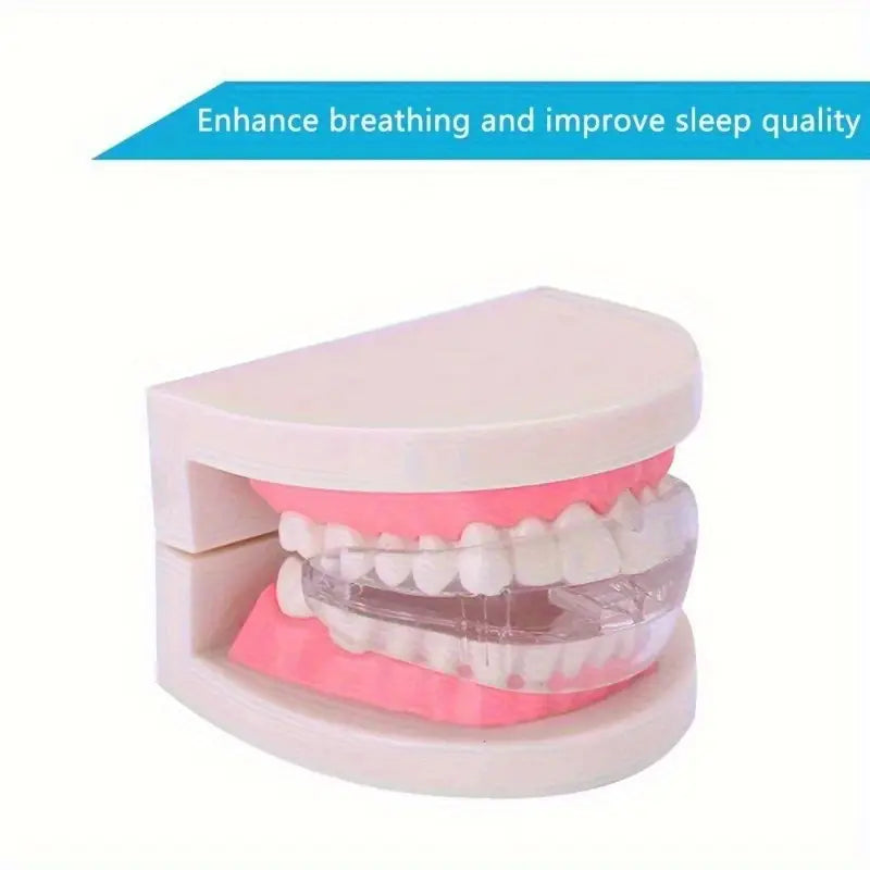 Dispositivo bucal diseñado para abrir suavemente las vías respiratorias y reducir / eliminar el ronquido, favoreciendo un sueño profundo y continuo.